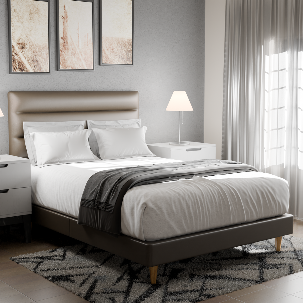 Sleek, modern, and effortlessly refined—the Bernie Faux Leather Bed Frame brings understated luxury to your bedroom. Upholstered in smooth, high-quality faux leather, it features a clean, minimal design that works with any style. Sturdy and durable, this bed frame offers the perfect balance of comfort and sophistication. Make a bold statement with the Bernie Faux Leather Bed Frame.