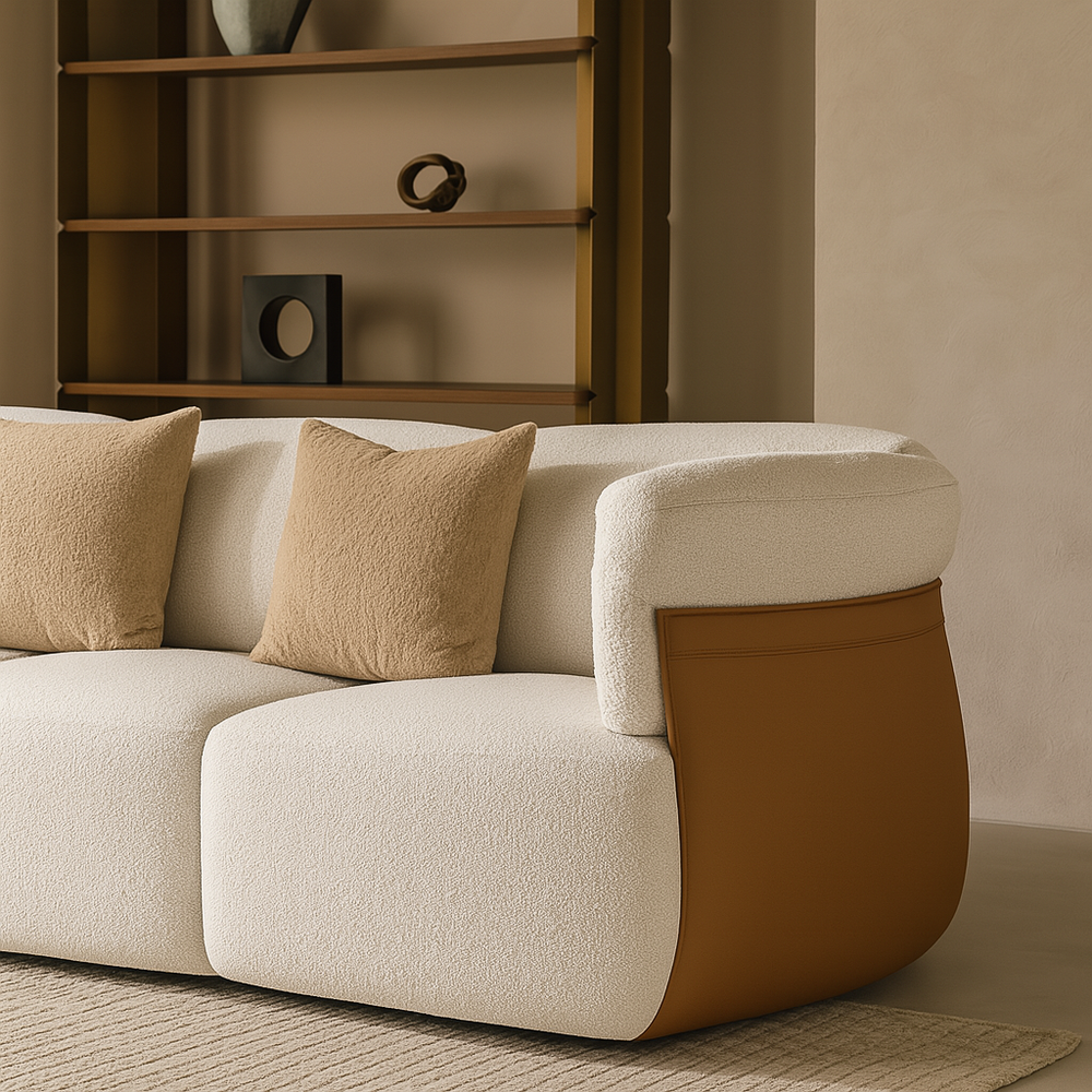 Built with a solid wooden frame, high-density D40/D45 sponge cushioning, and a low back height for a relaxed aesthetic, the Cairo sofa delivers structured yet comfortable support. Its understated full armrests and minimalist frame create a calm, grounded presence in any room.