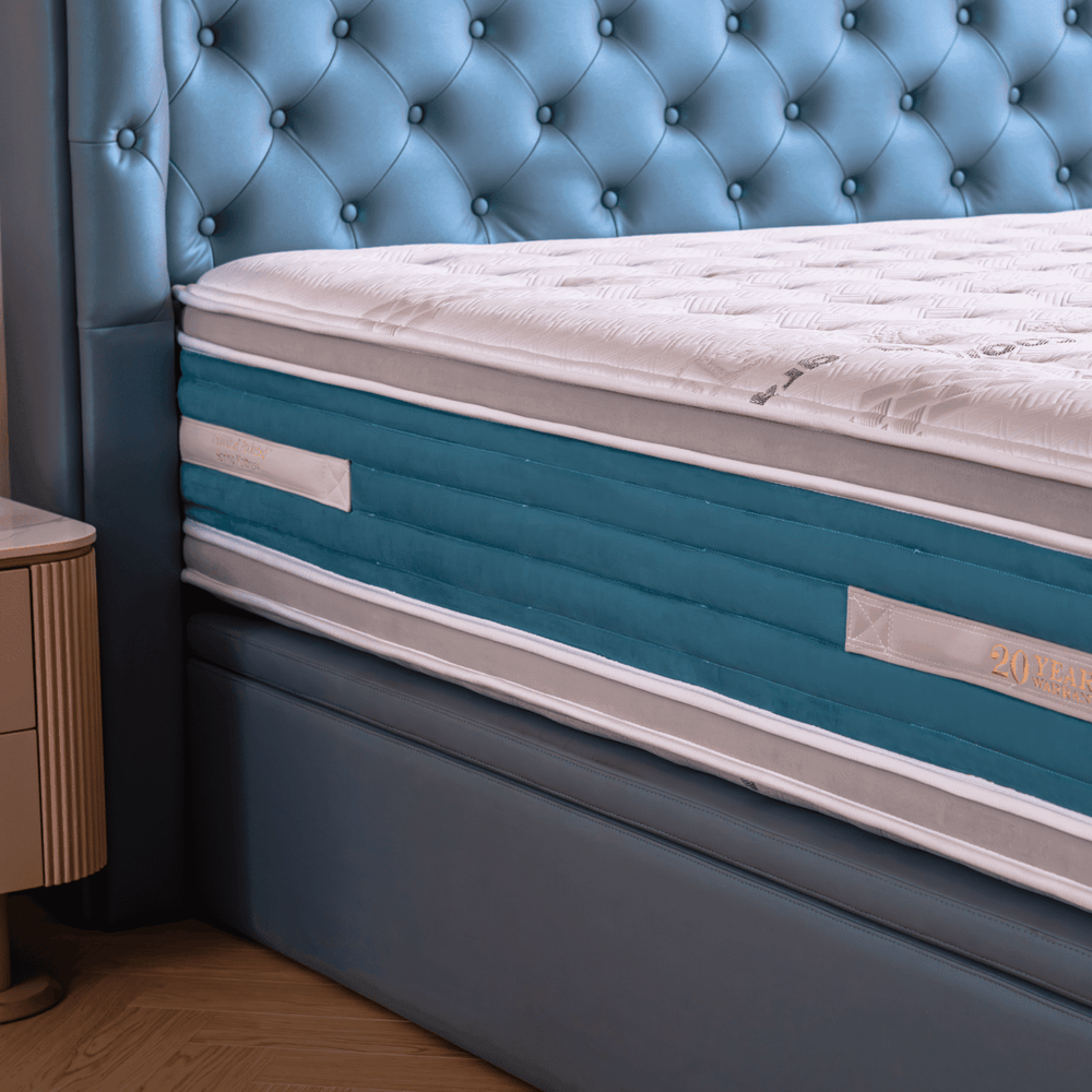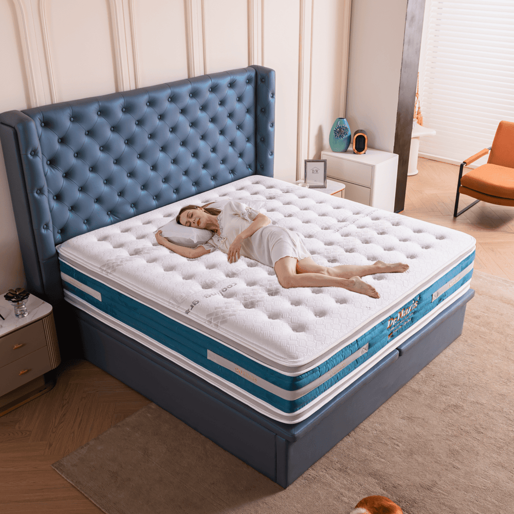 Experience a refreshing level of luxury with the Dr. Maxis Royale Glacier mattress, known for its exceptional comfort and durability. Crafted with 100% natural latex and a 7 zone individual barrel pocketed spring system, it offers superior support tailored to orthopedic needs, while visco elastic memory foam enhances pressure relief for a more comfortable sleep. Its dual side usage with plush tops on both sides adapts to seasonal preferences, ensuring year-round comfort. This innovative fabric helps regulate body temperature by promoting airflow and wicking away moisture, thereby creating a cooler and more comfortable sleep environment. The minty freshness adds a soothing touch, contributing to a more relaxing and restful nightโs sleep. In addition, this mattress contains graphene for anti-static properties that resist bacteria, fungi, and dust mites. Embrace a cleaner, healthier sleep space with this premium mattress, backed by quality and innovation.