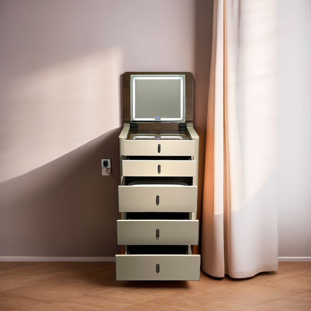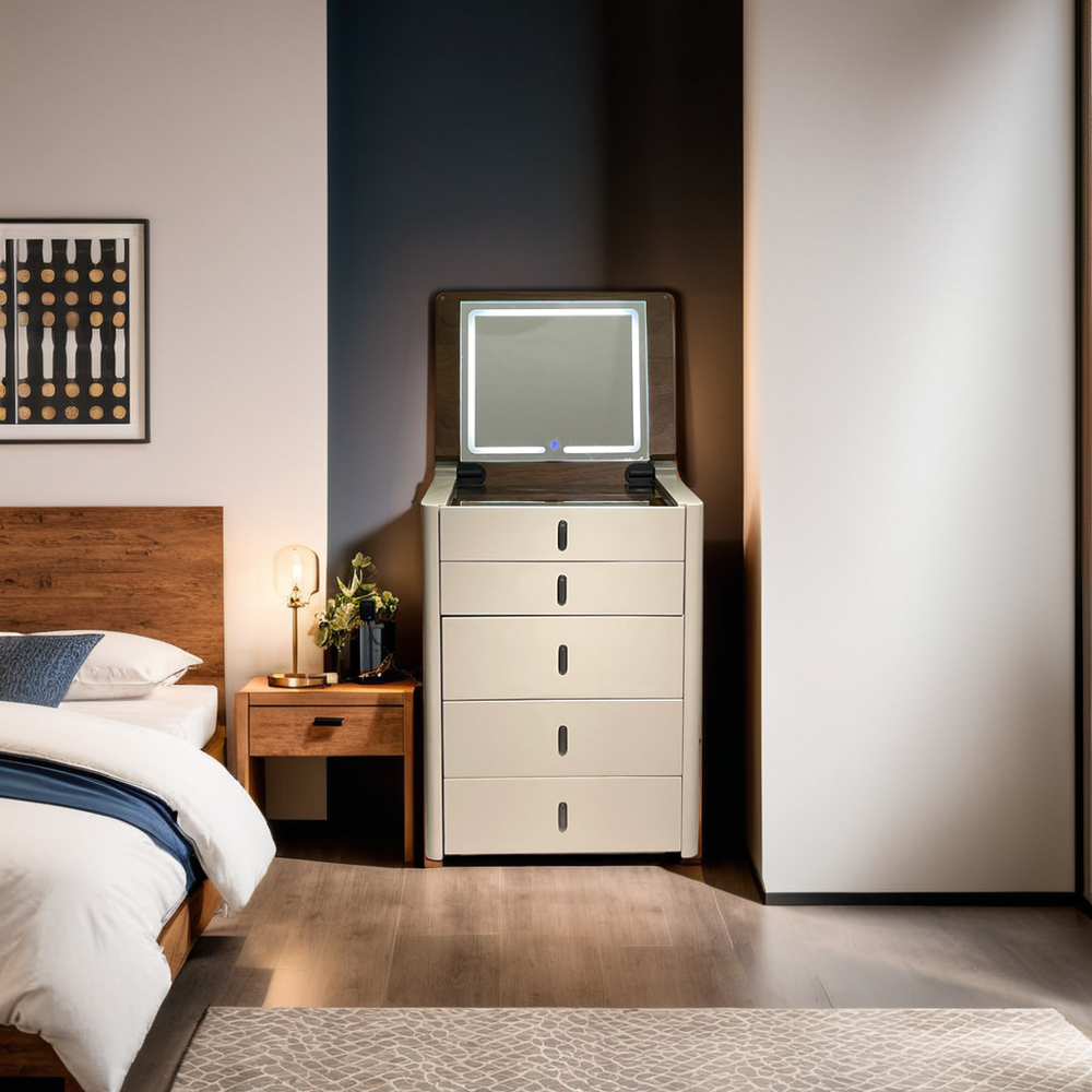 Introducing the Kadence Dressing Table with Mirror, a luxurious addition to your space. This elegant piece features a spacious table and a stylish mirror, perfect for getting ready for the day or a night out. Elevate your beauty routine with this sophisticated and exclusive dressing table.