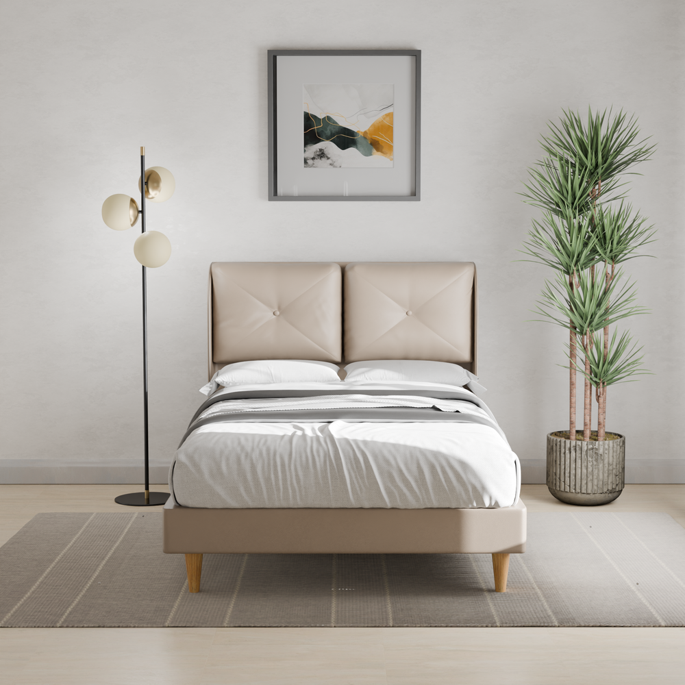 Add a touch of sleek sophistication to your bedroom with the Kendrix Faux Leather Bed Frame. Upholstered in smooth, high-quality faux leather, its minimalist design brings modern elegance to your space. Durable and supportive, this bed frame offers both comfort and style for a restful retreat.