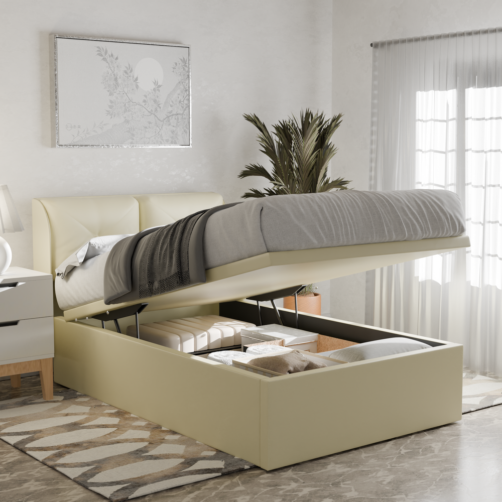 Maximize your bedroom’s potential with the Kendrix Faux Leather Storage Bed Frame. Upholstered in rich, faux leather for a refined look, it offers generous under-bed storage to keep your space organized. With its sturdy construction and sleek design, this bed frame combines modern aesthetics with smart functionality.