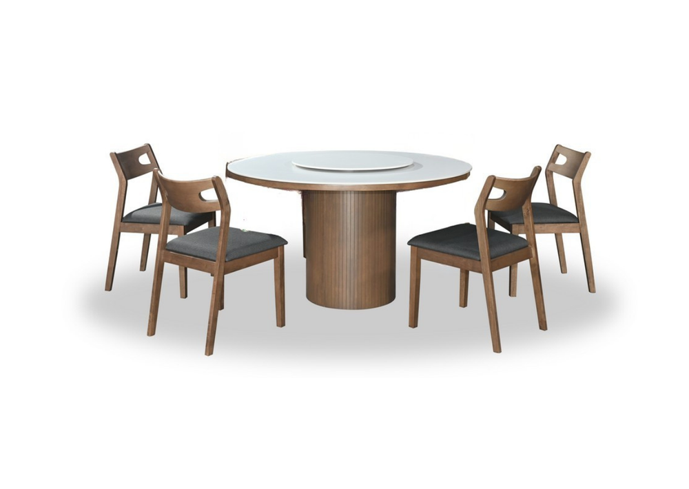 Bring elegance and comfort to your home with the Lara Dining Set. Designed as a stylish centerpiece for your dining space, this set includes a beautifully crafted dining table paired with four upholstered chairs, perfect for family meals, casual gatherings, and everyday dining.