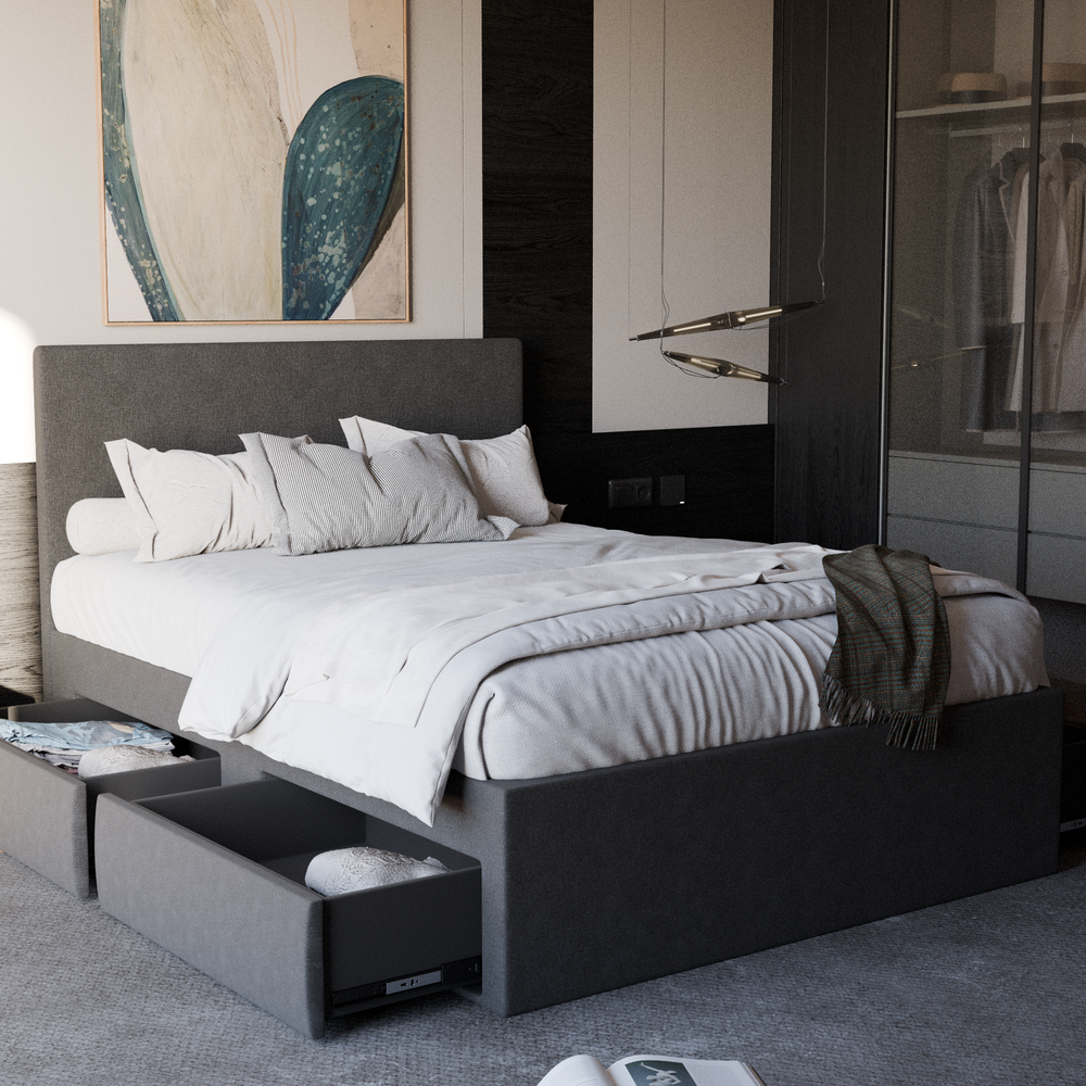 Queen & King: 2 drawers will be placed on each side of the bedframe