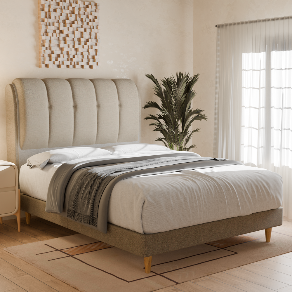 Elevate your bedroom with the timeless elegance of the Nolana Fabric Bed Frame. Upholstered in premium, soft fabric, its sleek design complements any décor, adding a touch of modern sophistication. Built with a sturdy frame for lasting durability and comfort, this bed frame is the perfect blend of style and functionality for a restful night’s sleep.