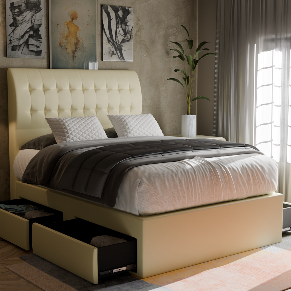 The Orlando Faux Leather Drawer Bed Frame combines sleek style with smart functionality. Wrapped in high-quality faux leather, it offers a modern and refined look while providing discreet, built-in drawers for practical storage. A perfect blend of form and function, this bed frame adds elegance and organization to your space.