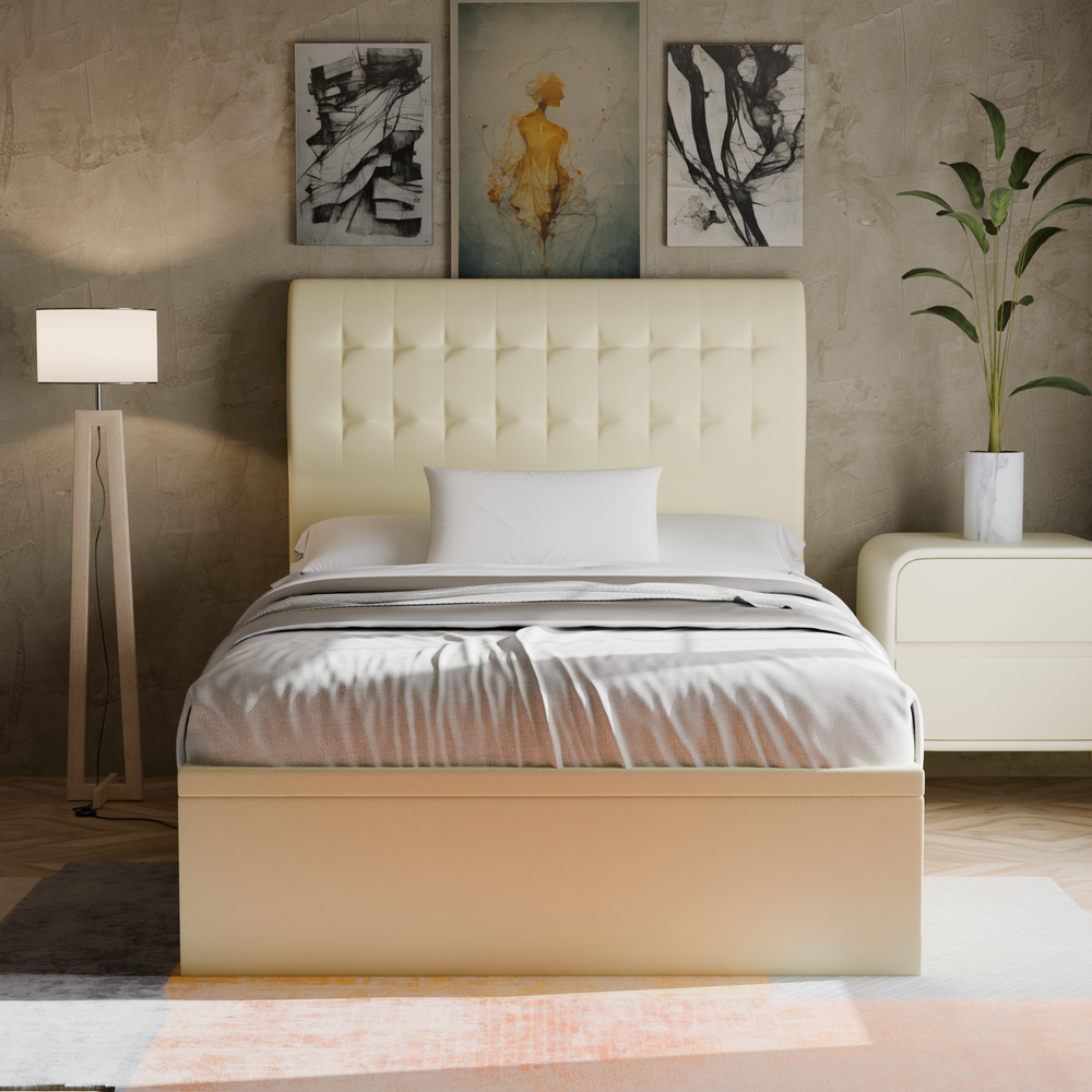 Simplify your bedroom with the Orlando Faux Leather Storage Bed Frame. Upholstered in smooth, premium faux leather, its contemporary design exudes sophistication while offering spacious under-bed storage for a clutter-free room. Built to last with durable materials and solid support, this bed frame delivers both style and practicality.