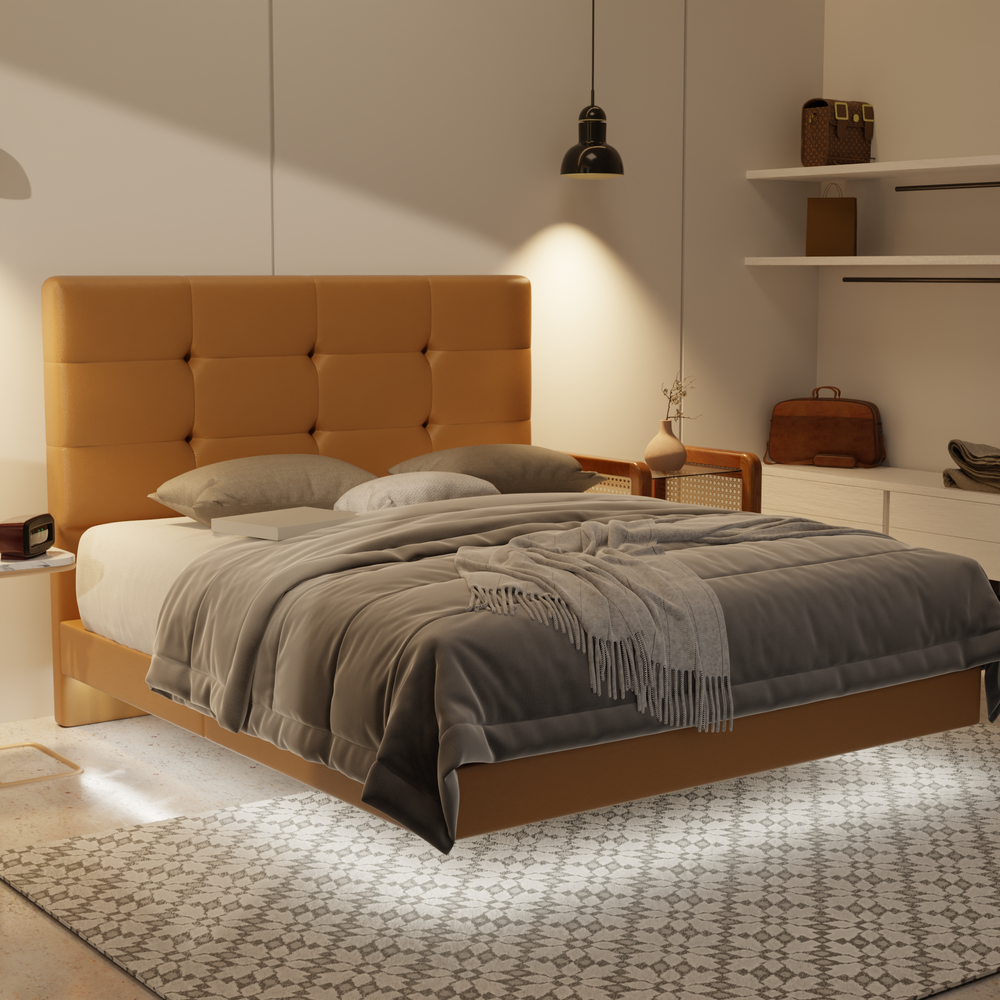 Experience luxury and innovation with the Rachelle Genuine Leather Floating Bed Frame. This stunning piece combines authentic leather upholstery with a contemporary floating design that creates an illusion of space and elegance in any bedroom. The integrated LED lighting adds a sophisticated ambiance, perfect for creating the ideal atmosphere for relaxation or intimate moments. Crafted with premium materials, the Rachelle transforms your bedroom into a modern sanctuary while providing exceptional comfort and style that elevates your everyday living.