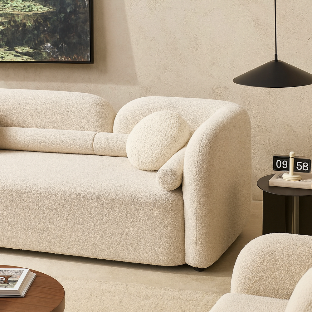 The Solis Fabric Sofa keeps your space feeling light, stylish, and effortlessly livable — the kind of comfort that works every day.