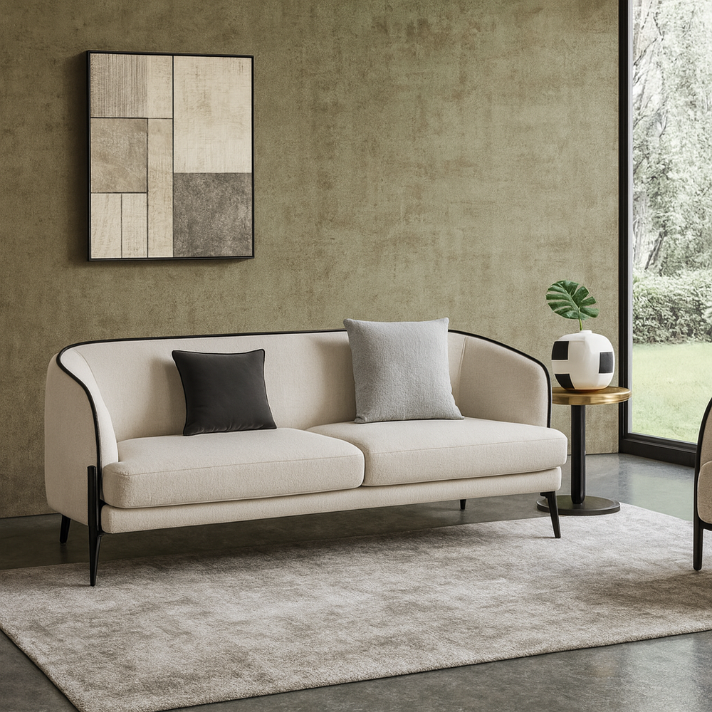 The Suri Fabric Sofa brings soft contours and everyday functionality into perfect harmony. Available in 1-seater, 2-seater, and 3-seater options, Suri is a stylish and supportive choice for living rooms, condos, lounges, or commercial spaces. Its inviting silhouette, upholstered in plush neutral fabric, delivers a relaxed yet elevated feel.