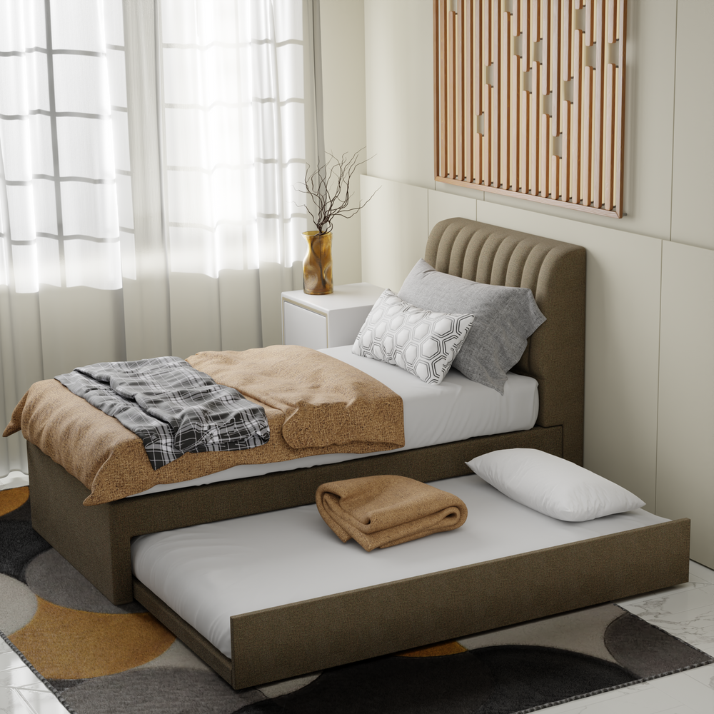 Indulge in luxurious comfort with the Vicky Fabric 3 in 1 Pull-Out Bed Frame. Its multi-functional design allows for a convenient pull-out bed, perfect for accommodating guests. The elegant fabric finish adds a touch of sophistication to any bedroom. Upgrade your sleeping experience with this exclusive and versatile bed frame.